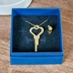 It comes in a small blue presentation box with one key, 40-46cm adjustable necklace with lobster clasp, and a single lock. Please note: the box colour may change depending on stock.